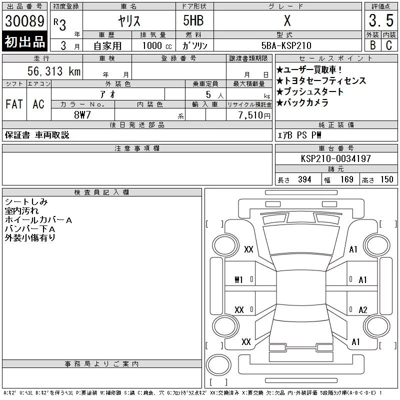 Toyota YARIS с аукциона Японии CAA Gifu лот № 30089