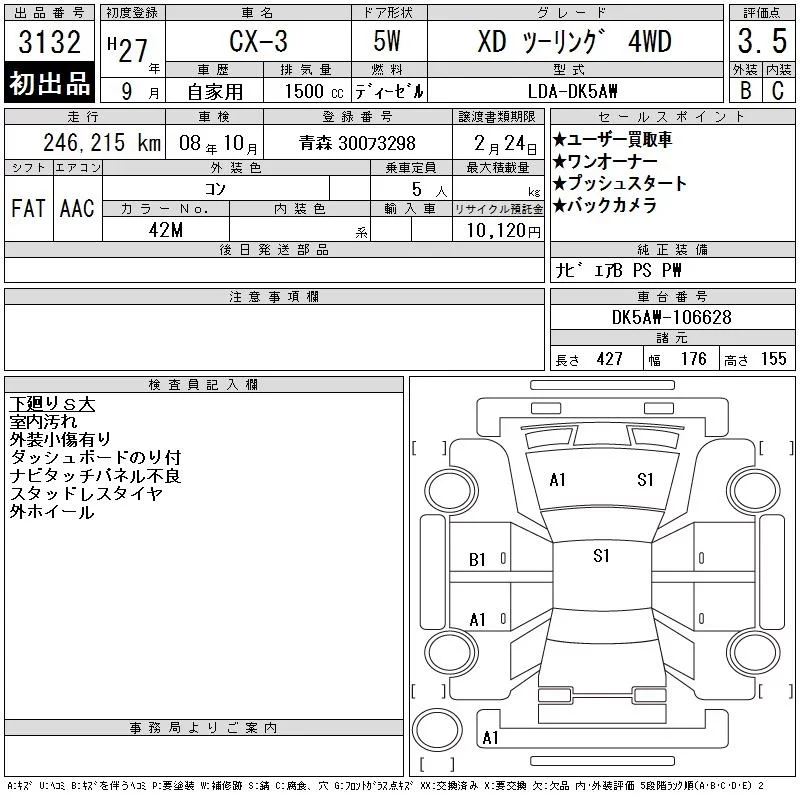 Mazda CX-3 с аукциона Японии CAA Tohoku лот № 3132