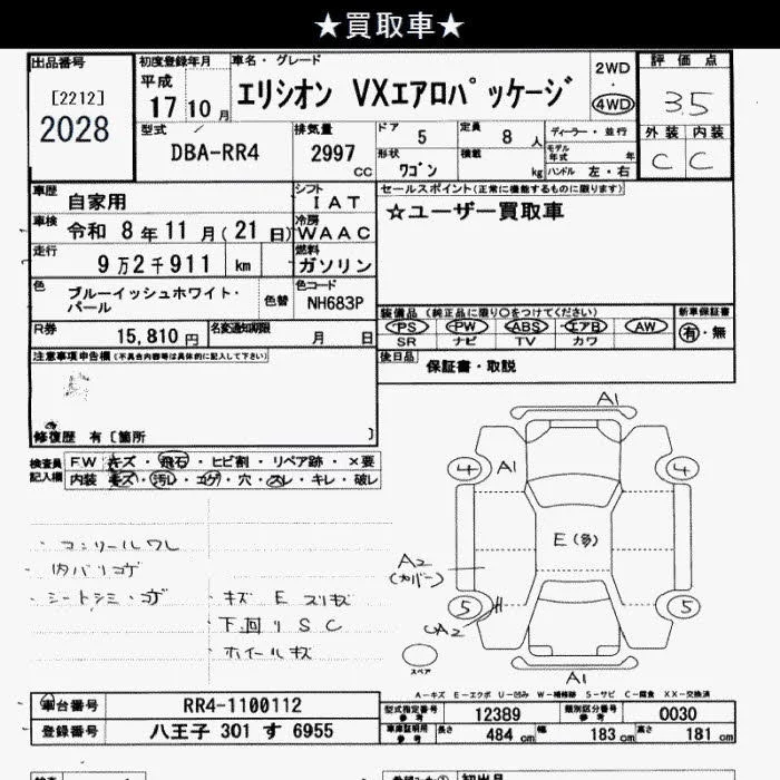 Honda ELYSION с аукциона Японии JU Saitama лот № 2028