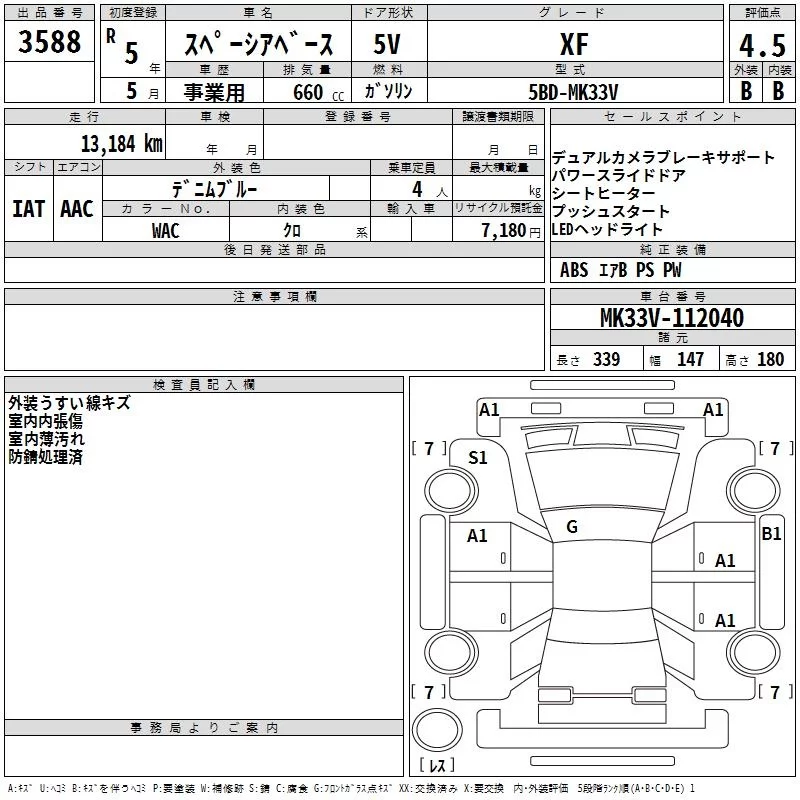 Suzuki SPACIA BASE с аукциона Японии TAA Kinki лот № 3588
