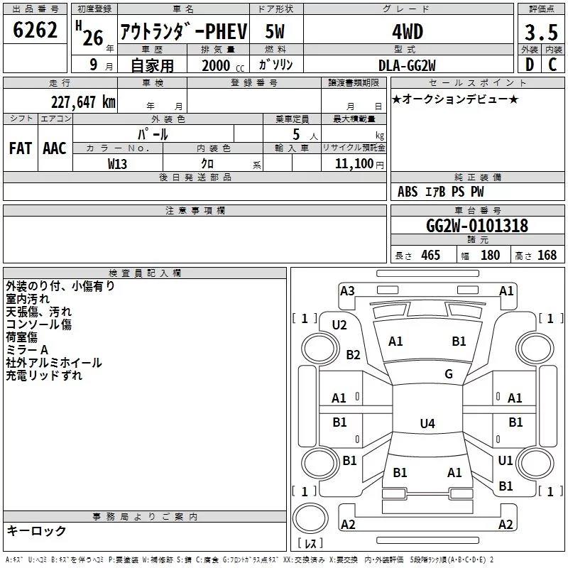Mitsubishi OUTLANDER PHEV с аукциона Японии TAA Kyushu лот № 6262