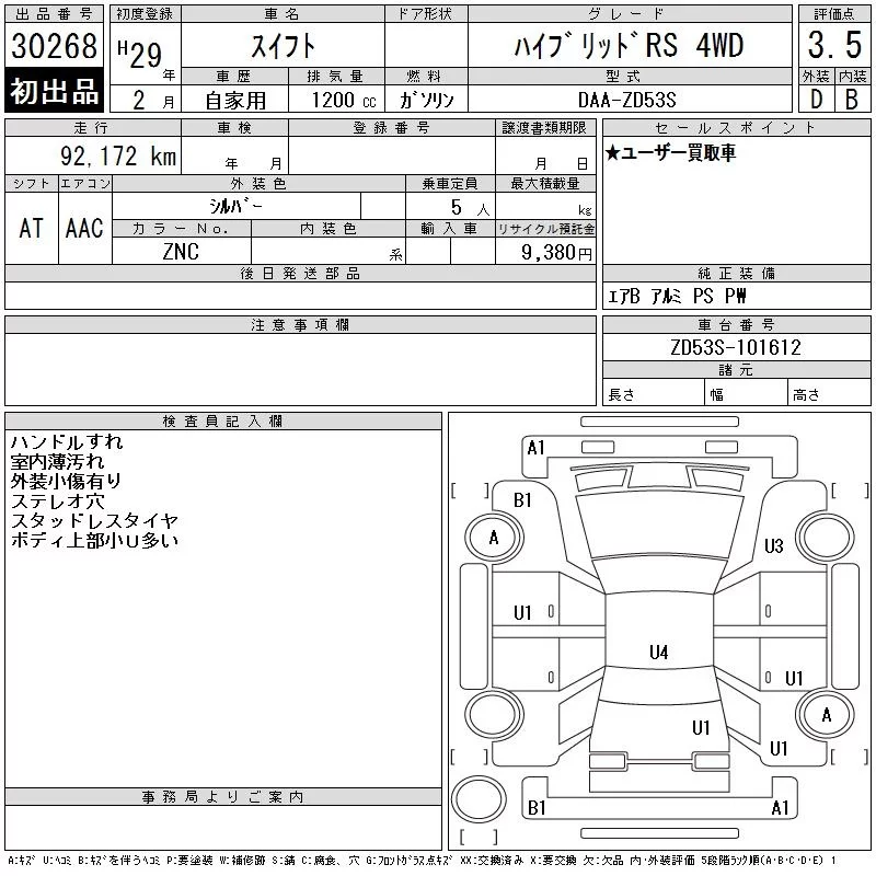 Suzuki SWIFT с аукциона Японии CAA Tokyo лот № 30268