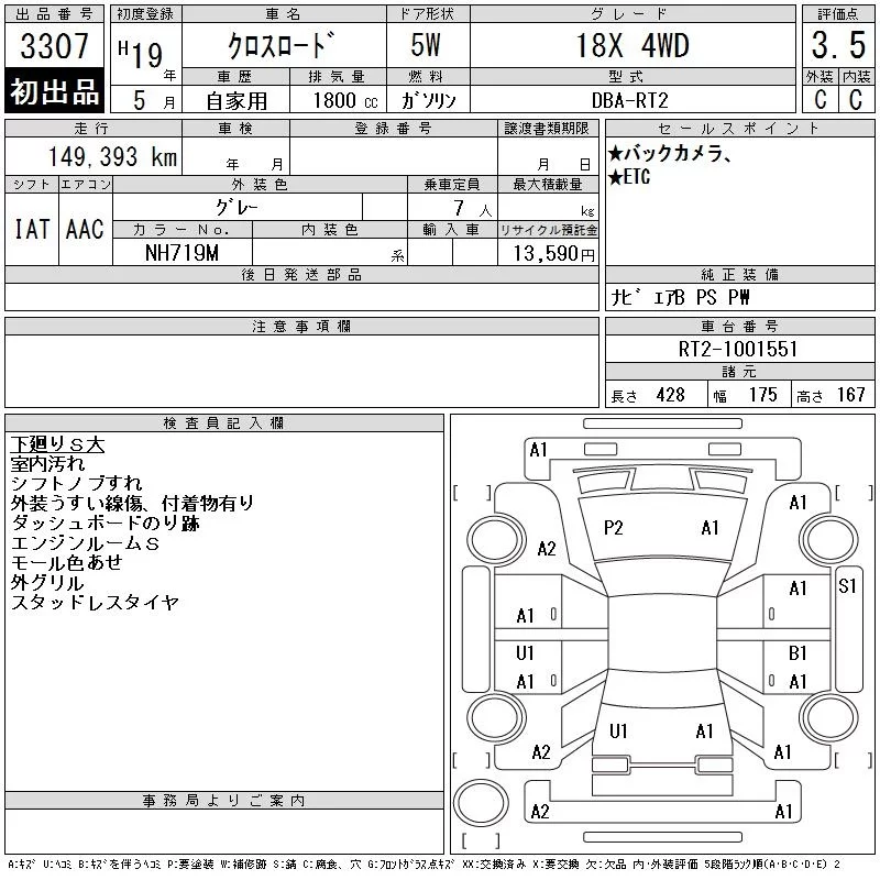 Honda CROSSROAD с аукциона Японии CAA Tohoku лот № 3307