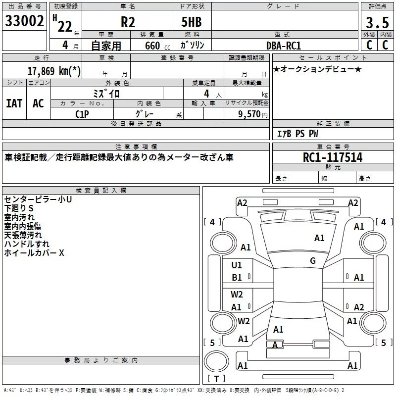 Subaru R2 с аукциона Японии TAA Minami Kyushu лот № 33002