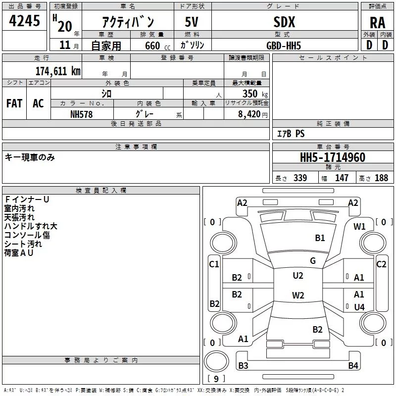 Honda ACTY VAN с аукциона Японии TAA Shikoku лот № 4245