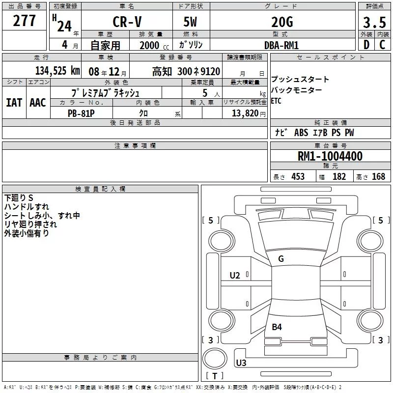 Honda CR-V с аукциона Японии TAA Shikoku лот № 277