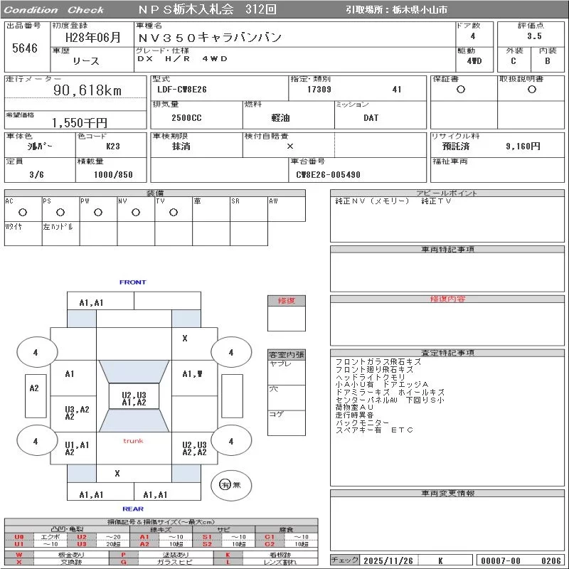 Nissan CARAVAN VAN с аукциона Японии NPS Tochigi Nyusatsu лот № 5646