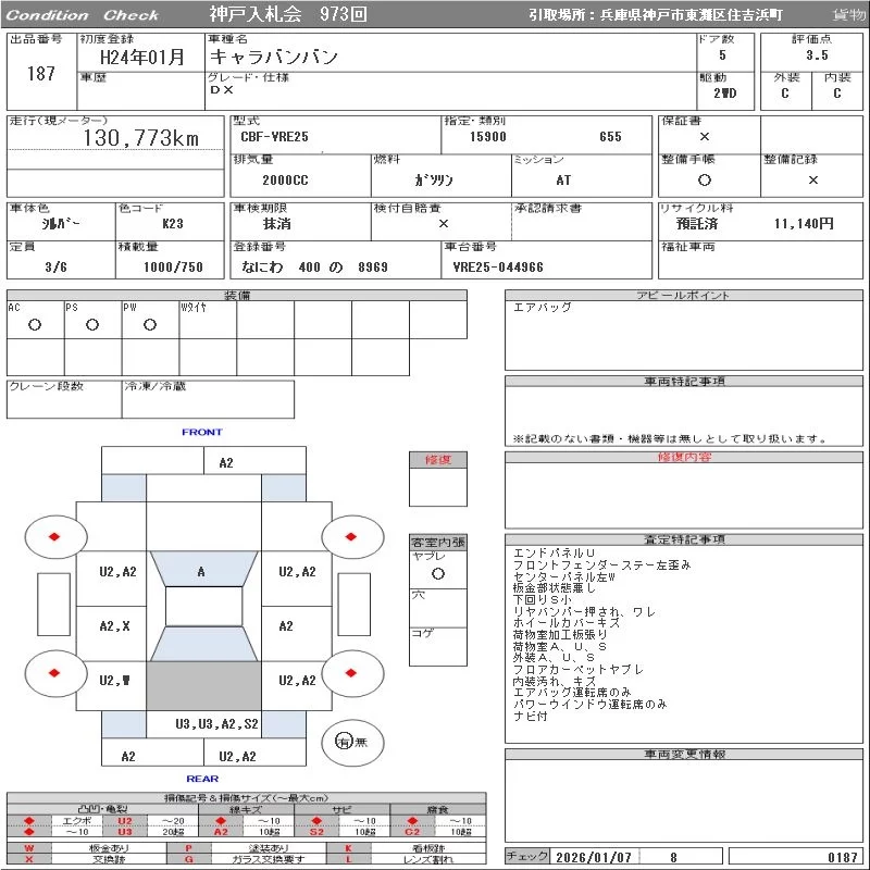 Nissan CARAVAN VAN с аукциона Японии ORIX Kobe Nyusatsu лот № 187