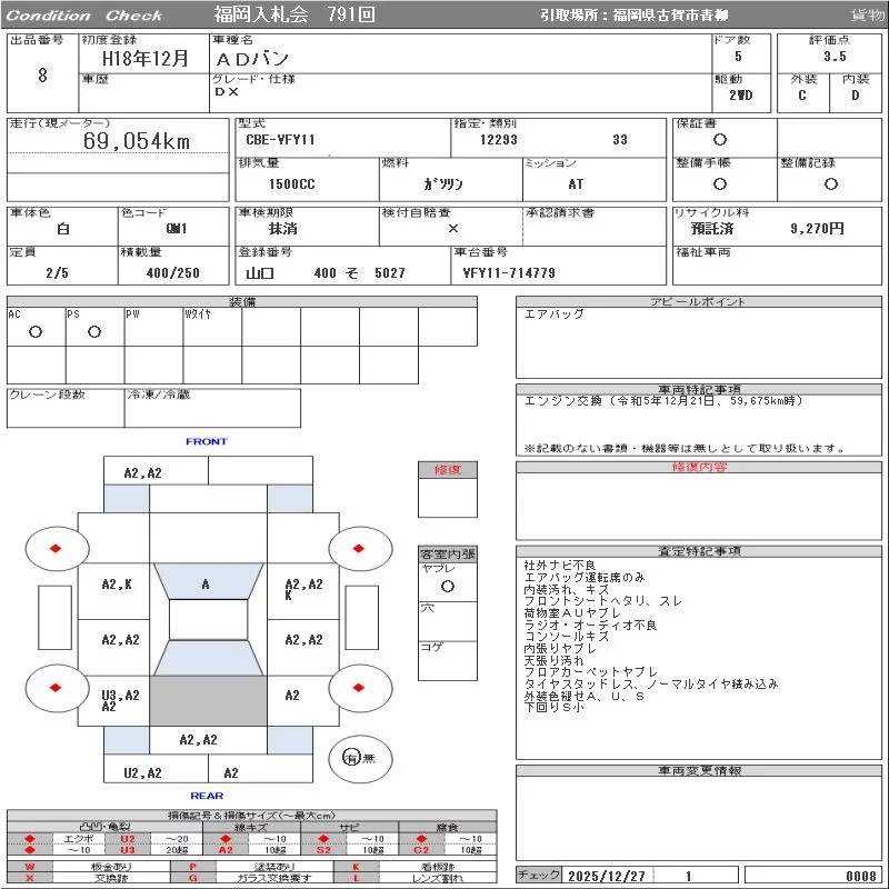 Nissan AD с аукциона Японии ORIX Fukuoka Nyusatsu лот № 8
