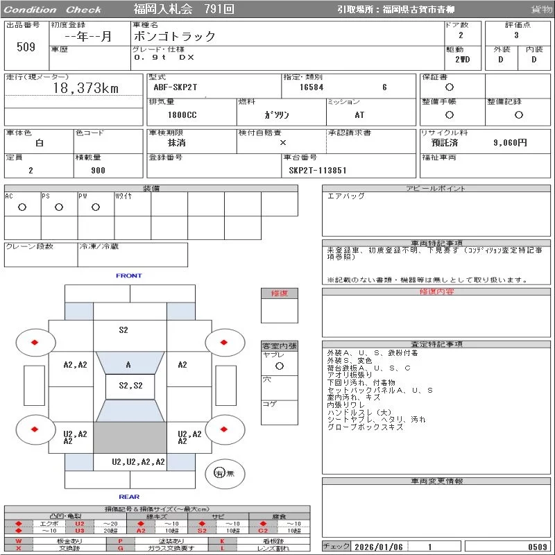 Mazda BONGO с аукциона Японии ORIX Fukuoka Nyusatsu лот № 509