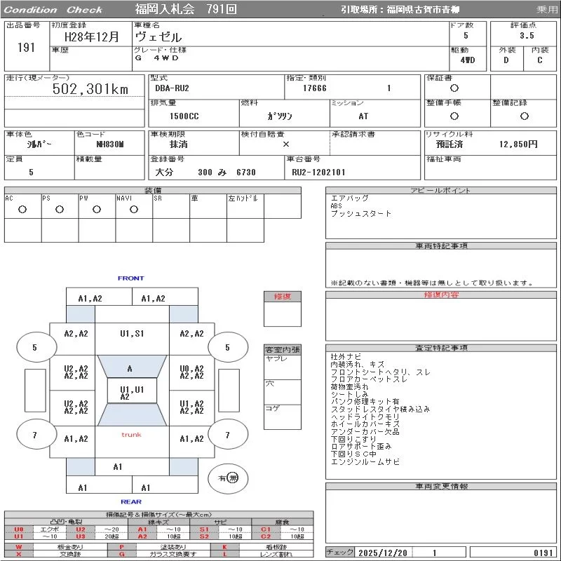 Honda VEZEL с аукциона Японии ORIX Fukuoka Nyusatsu лот № 191