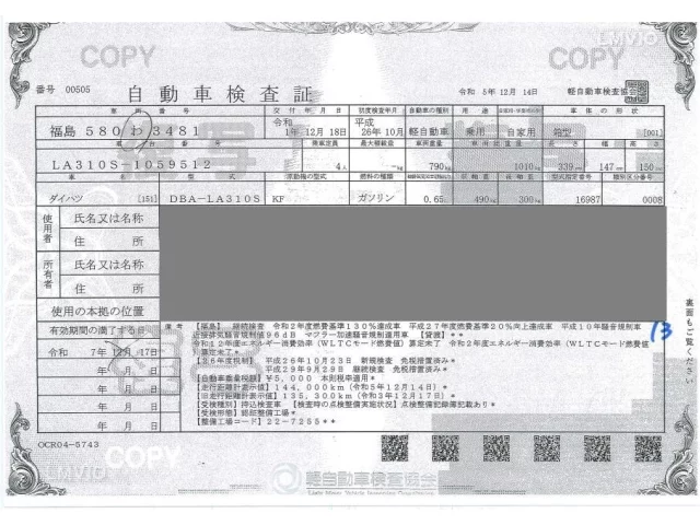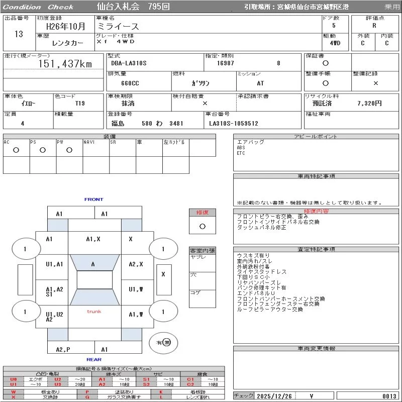 Daihatsu MIRA E S с аукциона Японии ORIX Sendai Nyusatsu лот № 13