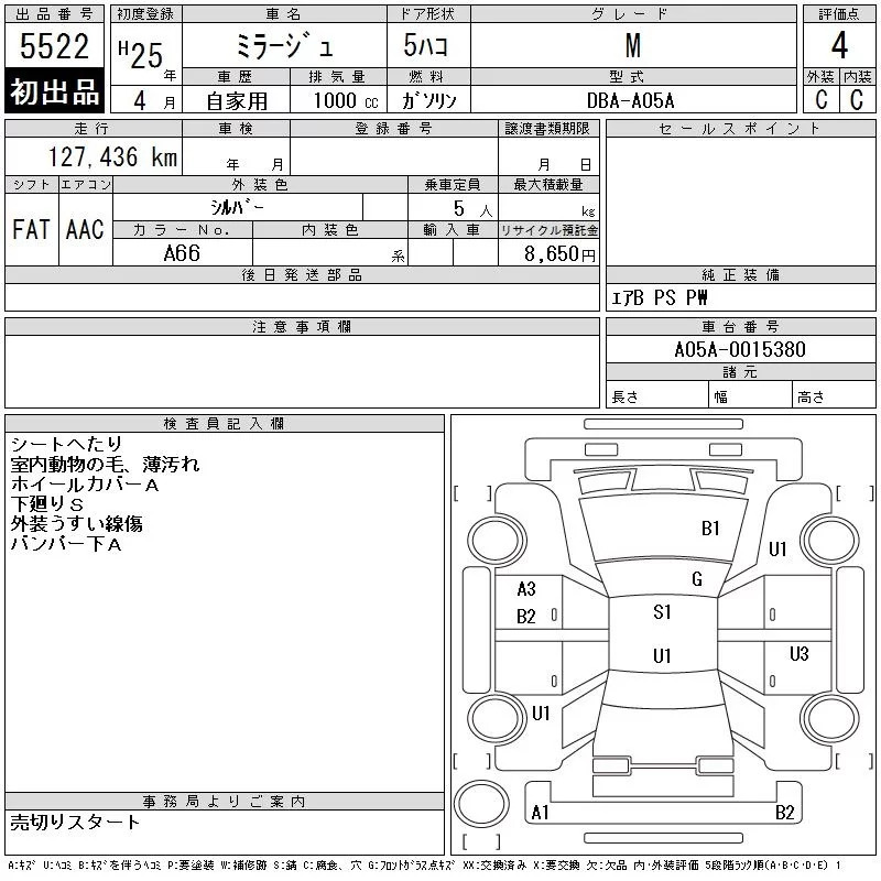 Mitsubishi MIRAGE с аукциона Японии CAA Tohoku лот № 5522