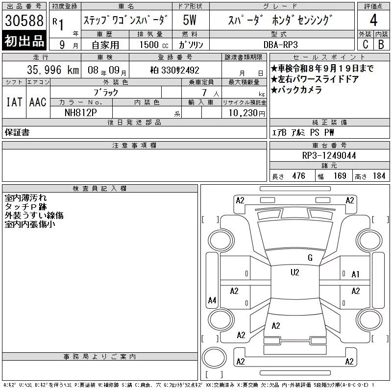 Honda STEP WAGON с аукциона Японии CAA Tokyo лот № 30588