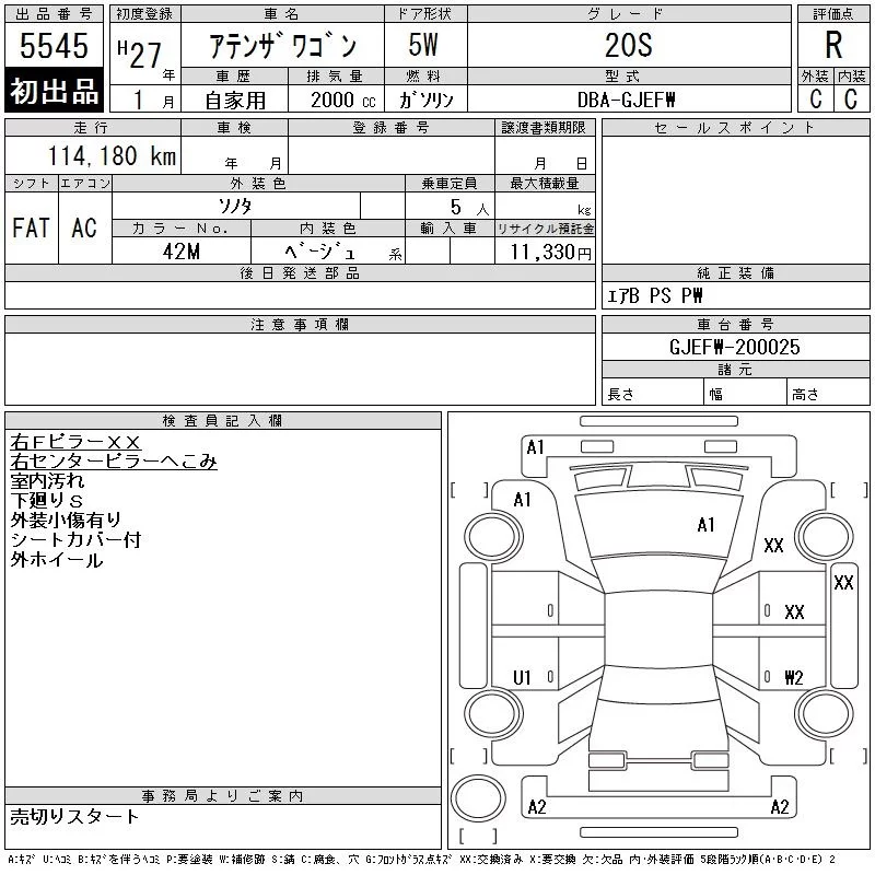 Mazda ATENZA WAGON с аукциона Японии CAA Tohoku лот № 5545
