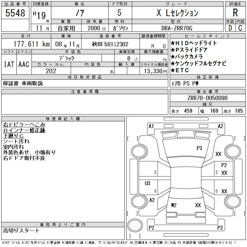 Toyota NOAH с аукциона Японии CAA Tohoku лот № 5548