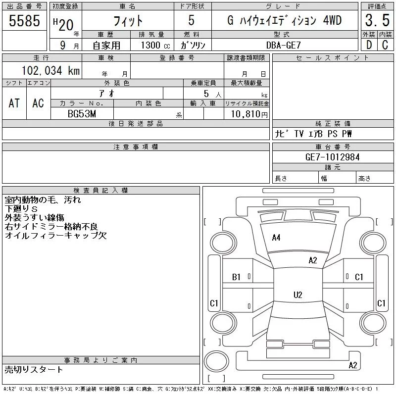 Honda FIT с аукциона Японии CAA Tohoku лот № 5585