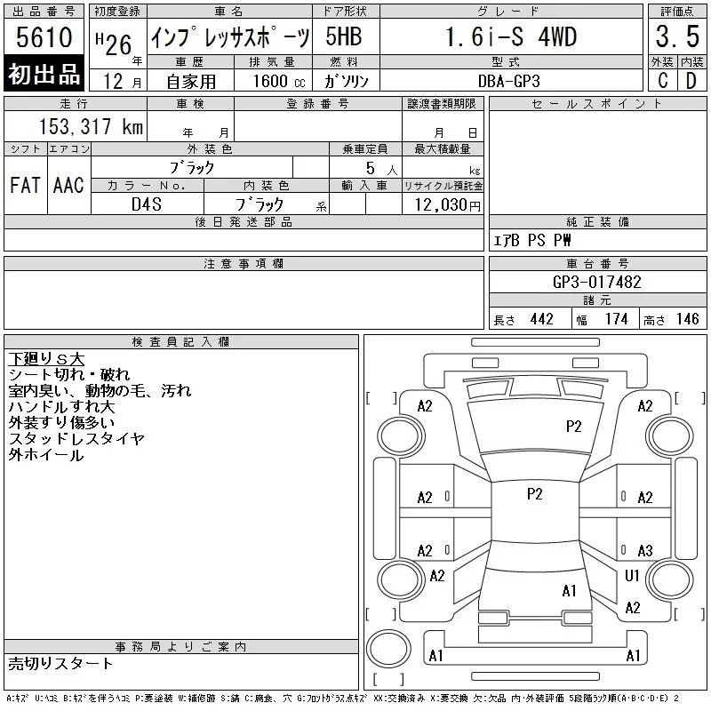 Subaru IMPREZA с аукциона Японии CAA Tohoku лот № 5610