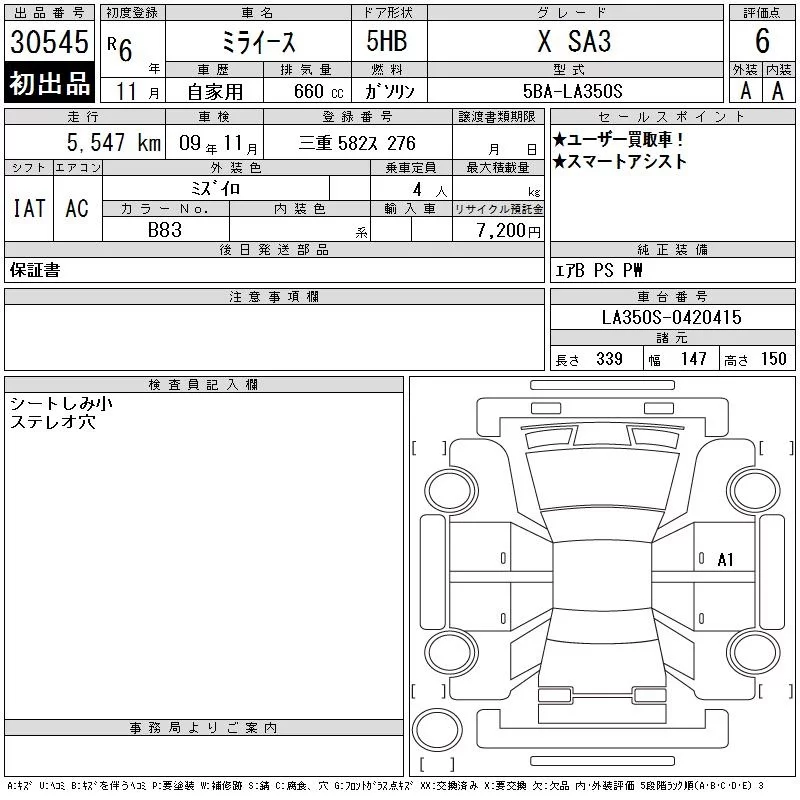 Daihatsu MIRA E S с аукциона Японии CAA Gifu лот № 30545