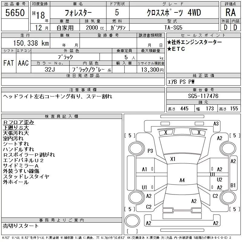 Subaru FORESTER с аукциона Японии CAA Tohoku лот № 5650
