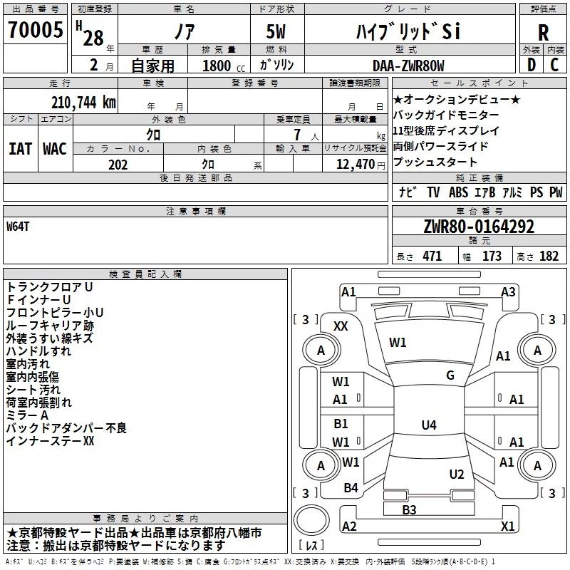Toyota NOAH с аукциона Японии TAA Kinki лот № 70005