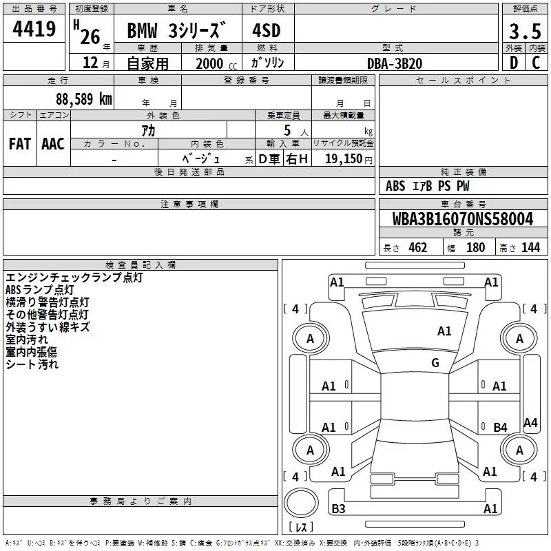 BMW 3-Series с аукциона Японии TAA Kyushu лот № 4419