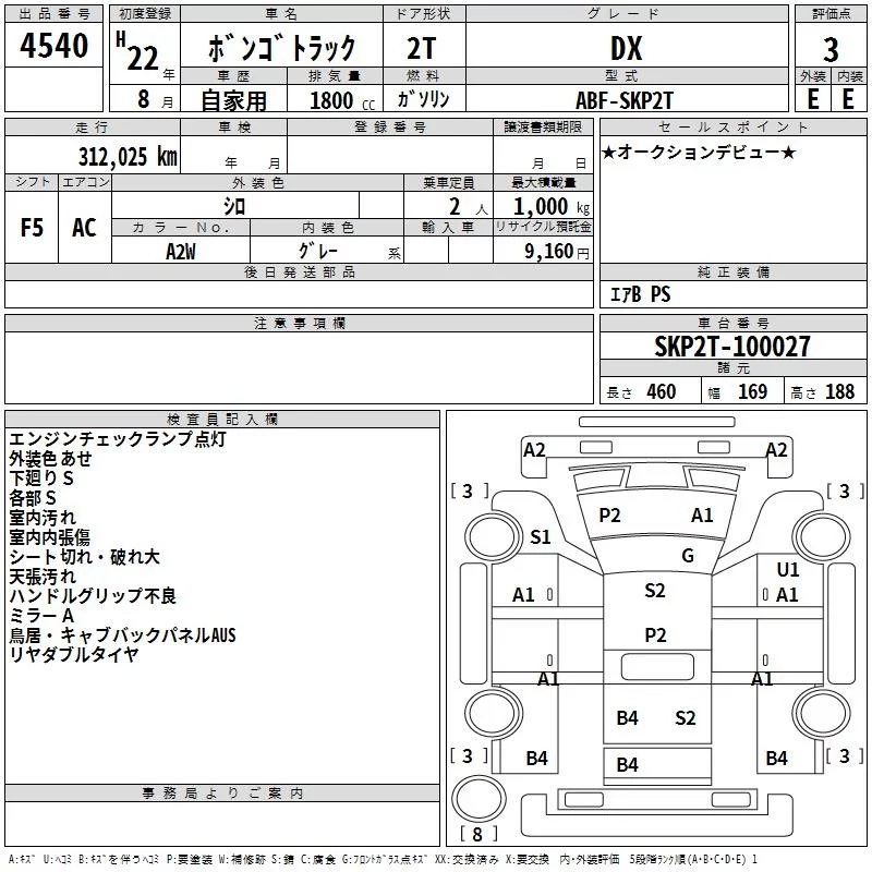 Mazda BONGO с аукциона Японии TAA Kyushu лот № 4540