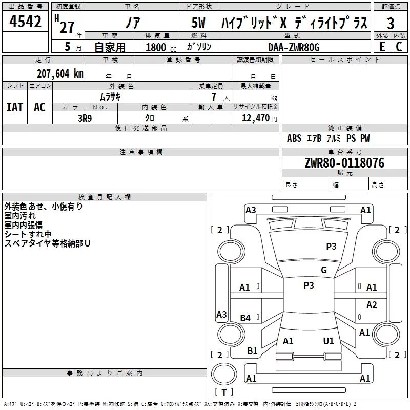 Toyota NOAH с аукциона Японии TAA Kyushu лот № 4542