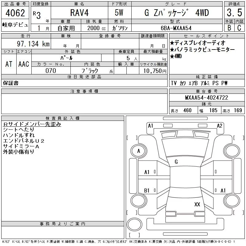 Toyota RAV4 с аукциона Японии CAA Gifu лот № 4062