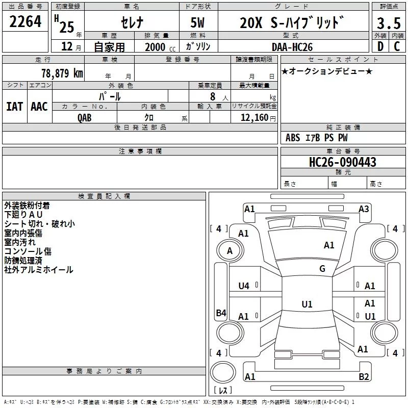 Nissan SERENA с аукциона Японии TAA Kinki лот № 2264