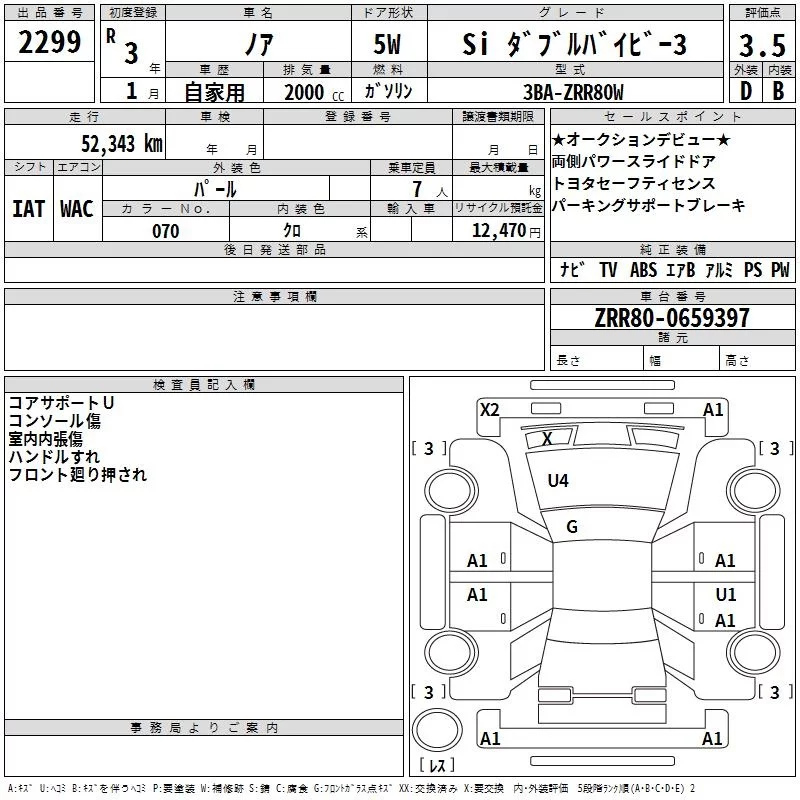 Toyota NOAH с аукциона Японии TAA Kinki лот № 2299