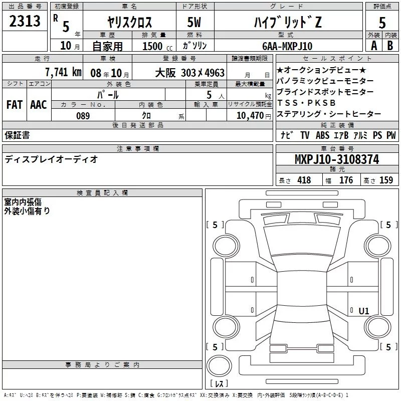 Toyota YARIS CROSS с аукциона Японии TAA Kinki лот № 2313