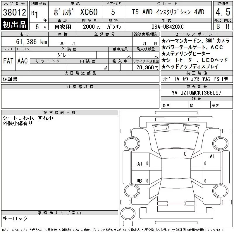 Volvo XC60 с аукциона Японии CAA Chubu лот № 38012