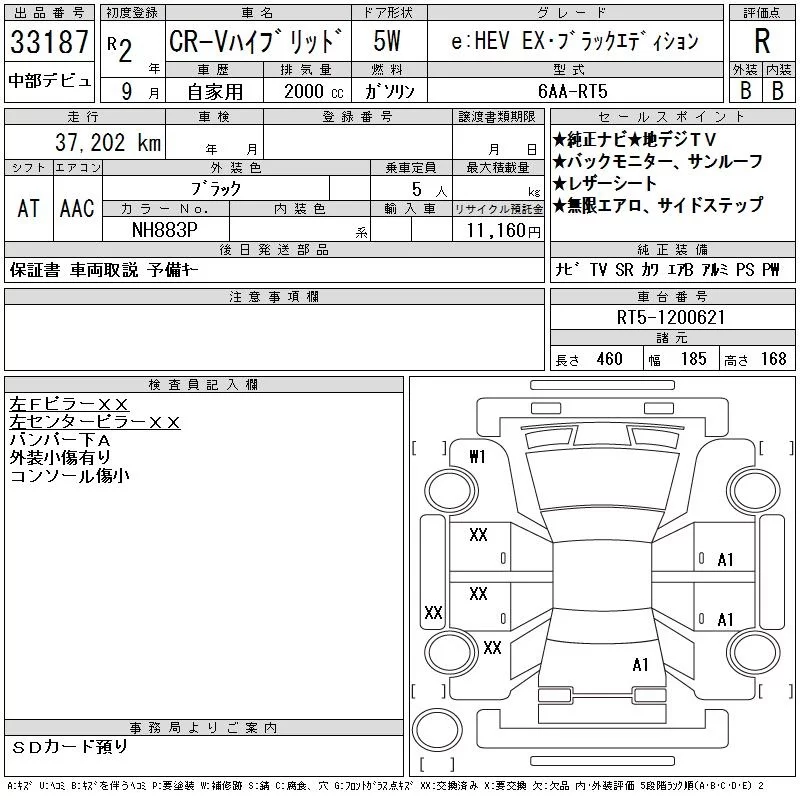Honda CR-V с аукциона Японии CAA Chubu лот № 33187