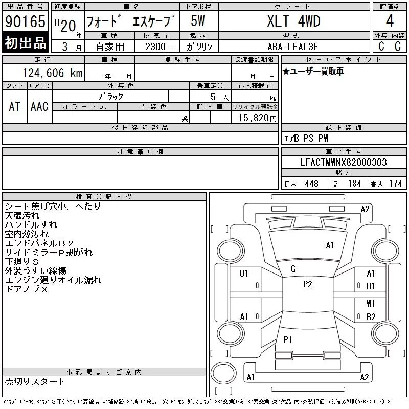 Ford ESCAPE с аукциона Японии CAA Chubu лот № 90165