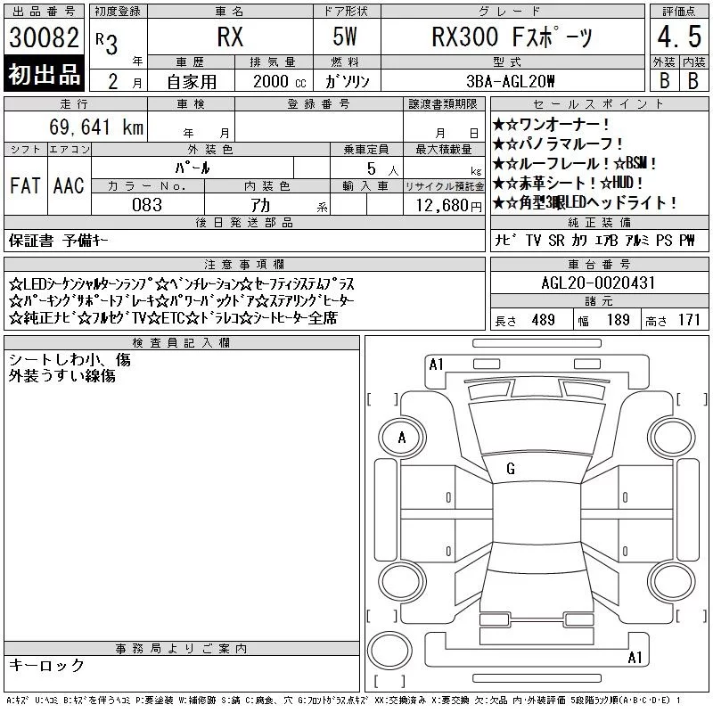 Lexus RX с аукциона Японии CAA Chubu лот № 30082