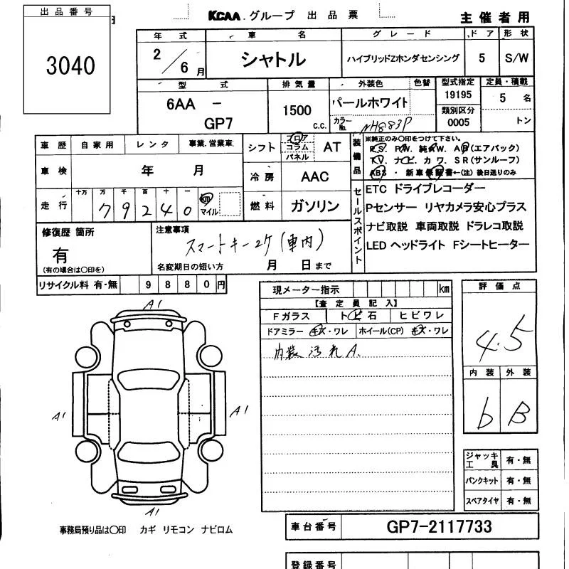 Honda SHUTTLE с аукциона Японии KCAA Minami Kyushu лот № 3040