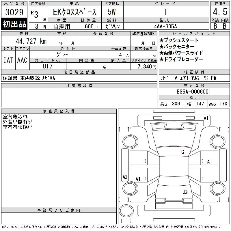 Mitsubishi EK X SPACE с аукциона Японии CAA Chubu лот № 3029