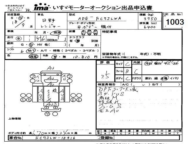 Hino RANGER с аукциона Японии Isuzu Tokyo лот № 1003