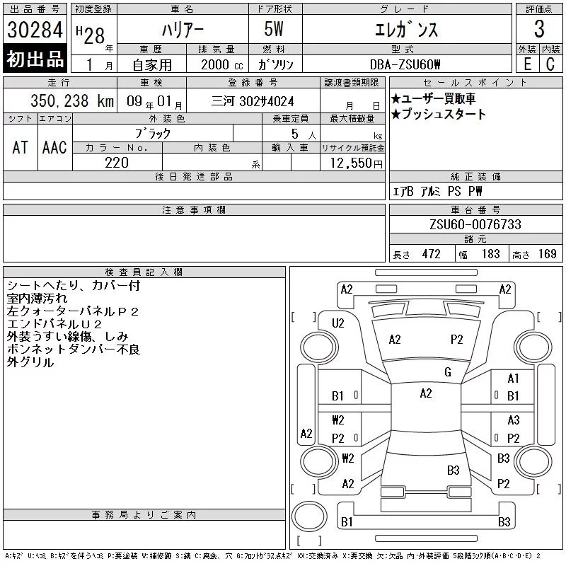 Toyota HARRIER с аукциона Японии CAA Chubu лот № 30284