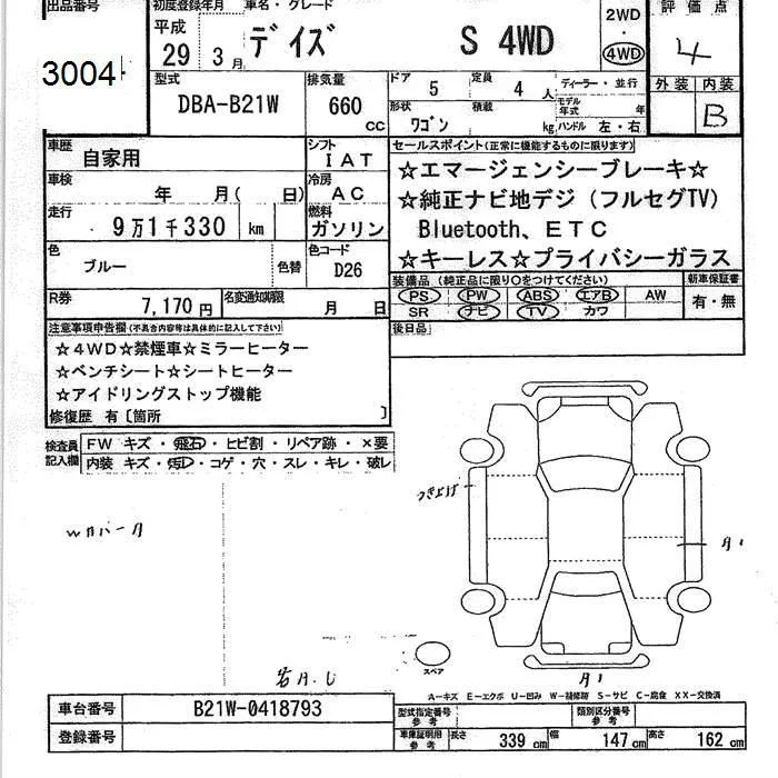 Nissan DAYZ с аукциона Японии JU Ishikawa лот № 3004