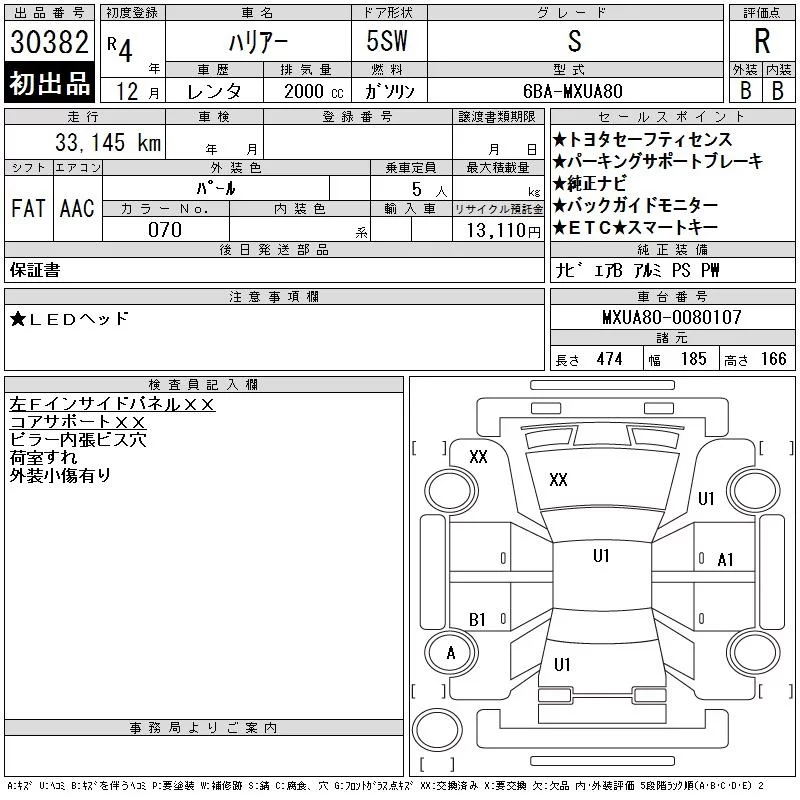 Toyota HARRIER с аукциона Японии CAA Chubu лот № 30382