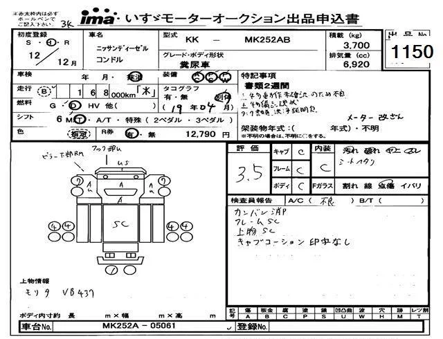 Nissan CONDOR с аукциона Японии Isuzu Tokyo лот № 1150