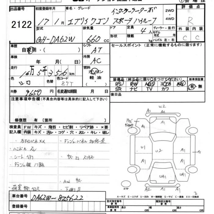 Suzuki EVERY WAGON с аукциона Японии JU Ibaraki лот № 2122