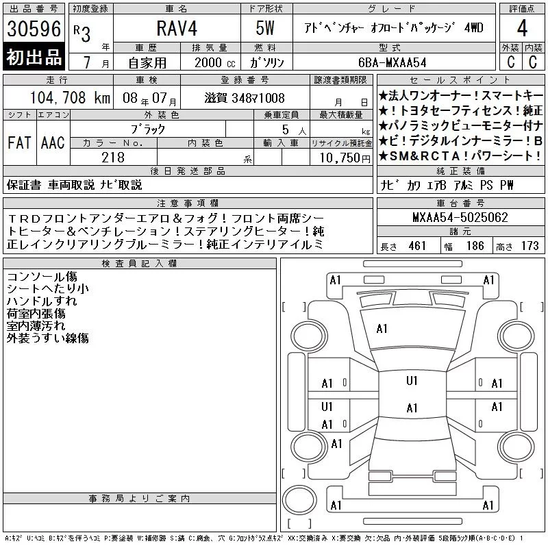 Toyota RAV4 с аукциона Японии CAA Chubu лот № 30596