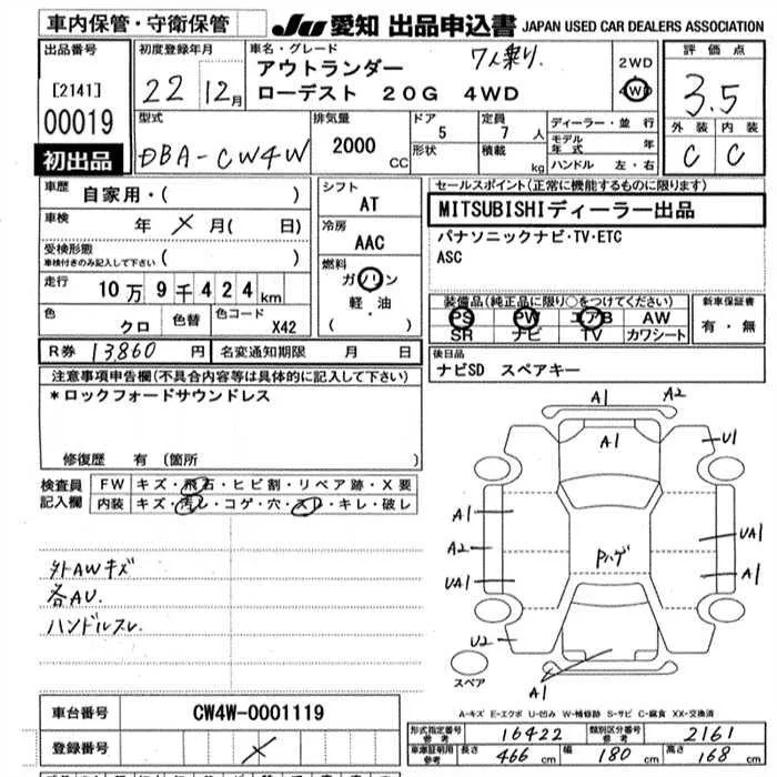 Mitsubishi OUTLANDER с аукциона Японии JU Aichi лот № 19