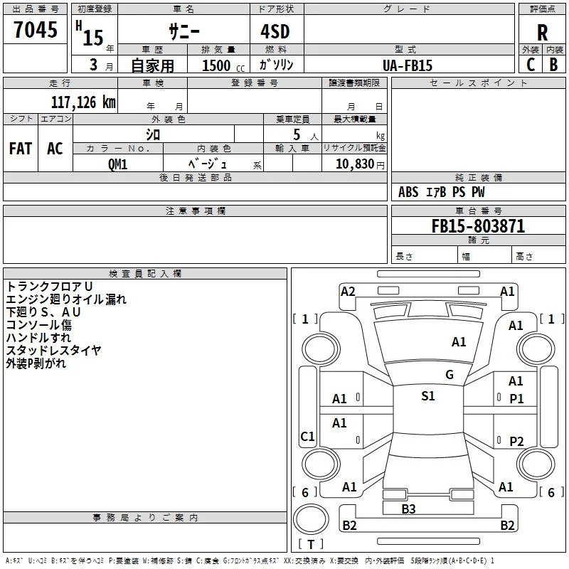 Nissan SUNNY с аукциона Японии TAA Tohoku лот № 7045