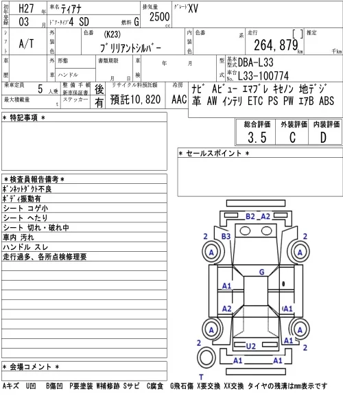 Nissan TEANA с аукциона Японии NAA Nagoya лот № 4003