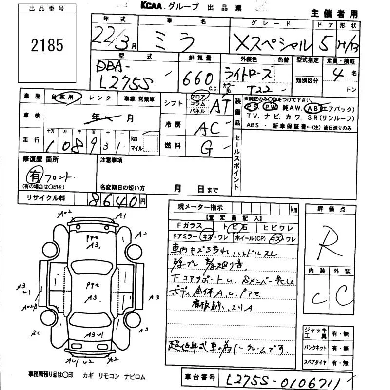 Daihatsu MIRA с аукциона Японии KCAA Fukuoka лот № 2185