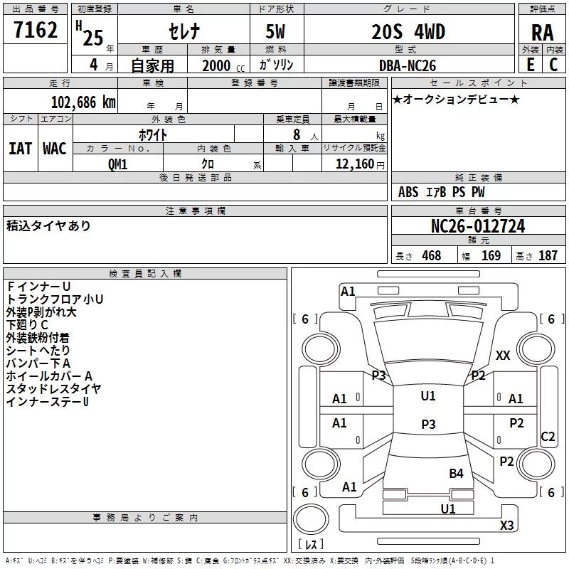 Nissan SERENA с аукциона Японии TAA Hokkaido лот № 7162